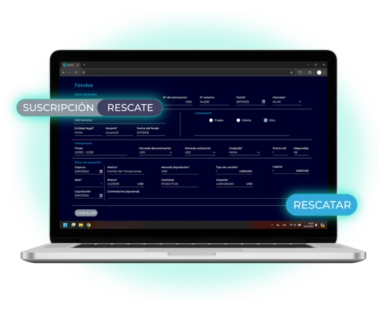 Gestión de carteras con cálculo de riesgo/retorno en tiempo real, cumplimiento regulatorio y automatización end-to-end desde la transacción hasta la contabilidad.